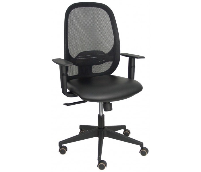 PIQUERAS Y CRESPO Silla Cilanco negra malla negra asiento similpiel negro brazo regulable.
