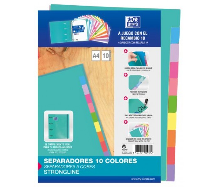 SEPARADORES CARTULINA STRONGLINE A4 10 POSICIONES - 10 COLORES OXFORD 400149957 (Espera 4 dias)