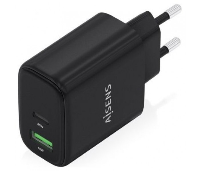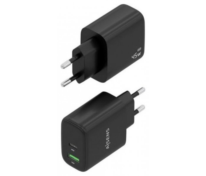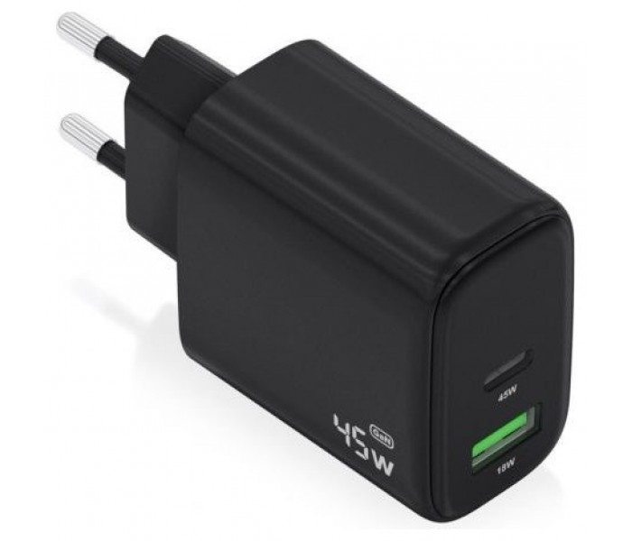 A110-0972 – Cargador GaN 45W, 1xUSB-C PD3.0 QC4.0, 1xUSB-A QC3.0, Negro