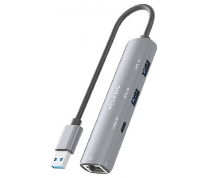 ASUC-4P035-GR – USB3.0 Dock USB-A a Ethernet Gigabit + HUB 1xUSB-C+2xUSB-A, GRIS, 15cm