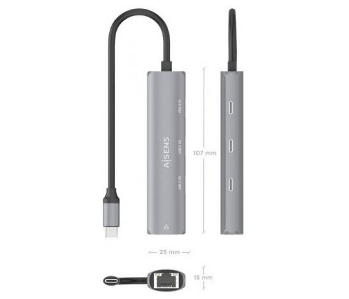 Hub USB Aisens ASUC-4P037-GR/ 3xUSB Tipo-C/ 1xRJ45/ GrisASUC-4P037-GR – USB3.0 Dock USB-A a Ethernet Gigabit + HUB 3xUSB-C, Gris, 15cmConversor USB-A ..