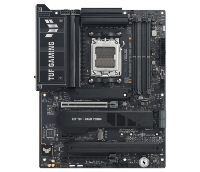ASUS TUF GAMING X870E-PLUS WIFI7. Fabricante de procesador: AMD, Socket de procesador: Zócalo AM5, Procesador compatible: AMD Ryzen 7000 Series, AMD Ryzen 8000 Series, AMD Ryzen 9000 Series. tipos de memoria compatibles: DDR5-SDRAM, Memoria interna máxima: 256 GB, Tipo de ranuras de memoria: DIMM. Interfaces de disco de almacenamiento soportados: M.2, PCI Express 4.0, PCI Express 5.0, SATA III, Tipos de unidades de almacenamiento admitidas: HDD & SSD, Niveles RAID: 0, 1, 5, 10. Tipo de interfaz ethernet: 2.5 Gigabit Ethernet, Estándar Wi-Fi: Wi-Fi 7 (802.11be), Wi-Fi estándares: Wi-Fi 7 (802.11be). Componente para: PC, Factor de forma: ATX, Familia del chipset: AMD