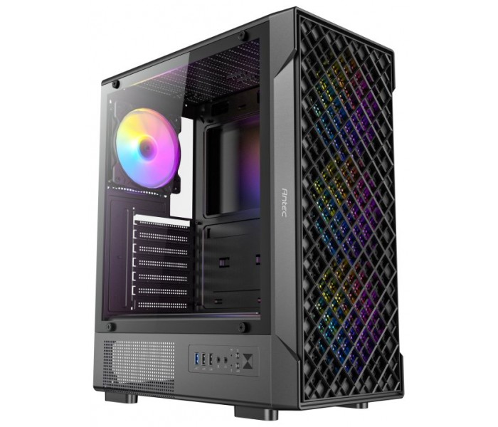 Antec VX-320 ARGB. Factor de forma: Midi Tower, Tipo: PC, Color del producto: Negro. Ubicación de fuente de alimentación: Fondo. Ventiladores frontales instalados: 3x 120 mm, Ventiladores traseros instalados: 1x 120 mm, Diámetros de ventiladores superiores soportados: 120,140 mm. Ancho: 205 mm, Profundidad: 370 mm, Altura: 450 mm. Peso del paquete: 4,62 kg