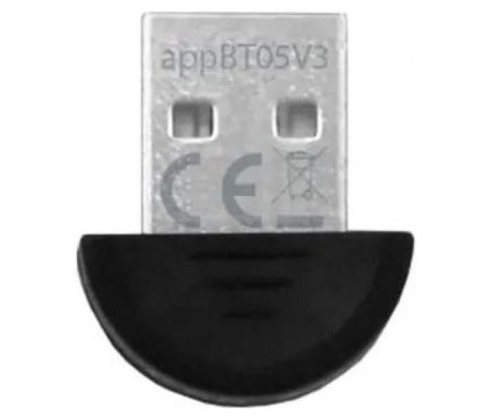 | Características | - USB 2.0 - Bluetooth 5.4 - Frecuencia 2,4 GHz - Distancia de funcionamiento hasta 10 m - Plug and Play - Diseño nano, portable - Compatible con ratón, teclado, altavoz, auriculares, impresora, mando, etc - Bluetooth Dimensiones y peso - 20 x 23 x 7 mm - 4 g Contenido - APPBT05V3 - Guía de instalación rápida |