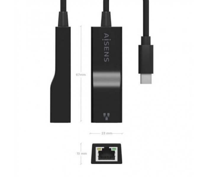 Adaptador USB Tipo-C - RJ45 Aisens A109-0765/ 1000 Mbps AISENS - CONVERSOR USB3.1 GEN1 USB-C A ETHERNET GIGABIT 10/100/1000 MBPS, NEGRO, 11CM Descri..