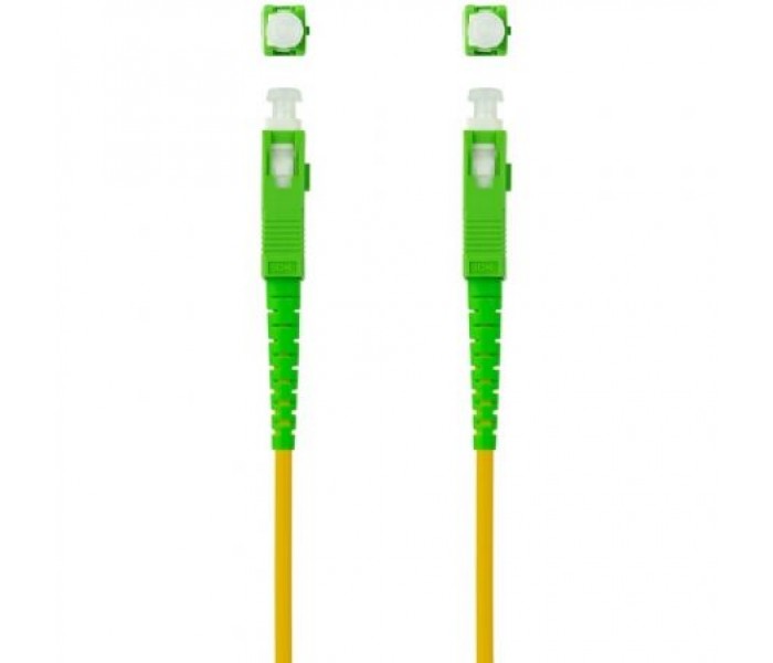 Especificaciones:. . Se utiliza para conectar la roseta de compañía de internet al router. Tipo de fibra: Monomodo G657A2 . Tipo de conector: SC/SC. Tipo de pulido: APC/APC. Diámetro exterior: 3 mm. Pérdida de inserción: <0.3dB. Pérdida de retorno: >;50dB. Sección del núcleo: 9/125 micrones. Revestimiento LSZH. Longitud: 3 metros. Color: Amarillo. NormativaS: RoHS. Test de Funcionamiento: 100% testado