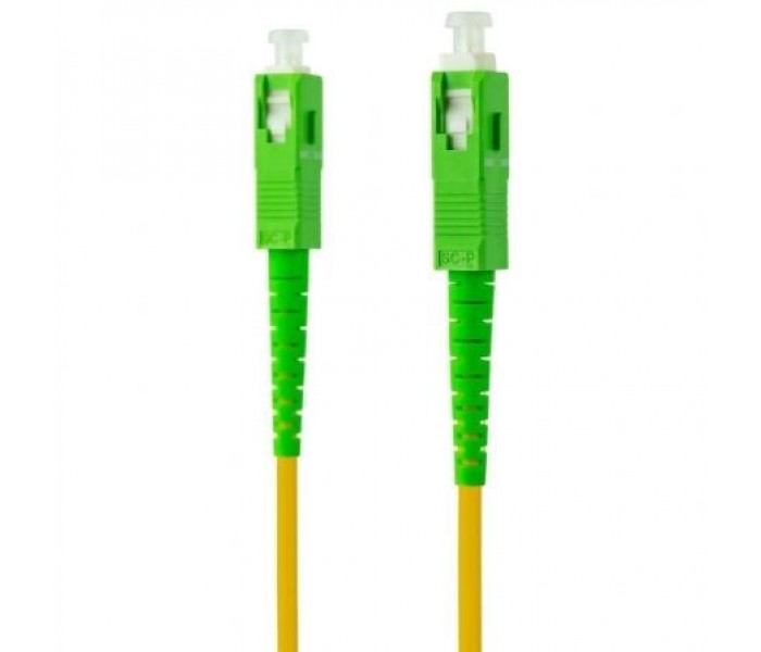 Especificaciones:. . Se utiliza para conectar la roseta de compañía de internet al router. Tipo de fibra: Monomodo G657A2 . Tipo de conector: SC/SC. Tipo de pulido: APC/APC. Diámetro exterior: 3 mm. Pérdida de inserción: <0.3dB. Pérdida de retorno: >;50dB. Sección del núcleo: 9/125 micrones. Revestimiento LSZH. Longitud: 15 metros. Color: Amarillo. NormativaS: RoHS. Test de Funcionamiento: 100% testado