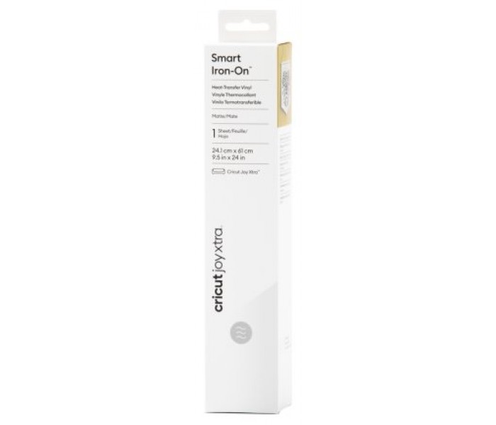 Cricut Joy Xtra Smart Iron-On. Tipo de producto: Rollo de vinilo de termotransferencia, Tipo: Vinilo de termotransferencia liso, Color del producto: Blanco. Ancho: 241 mm, Longitud: 609 mm. Hojas por paquete: 1 hojas