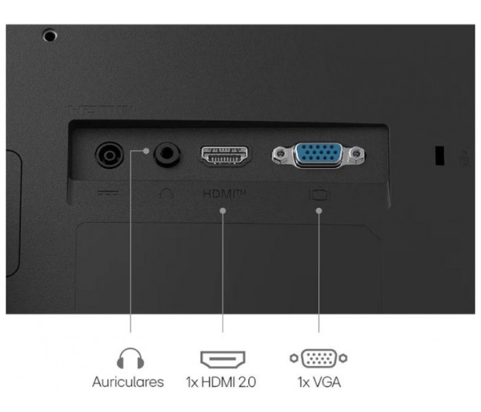 | Conexión | - 1 x HDMI - 1 x D-Sub (Resolución máx. 75Hz) - Salida para Auriculares 3 Anillos (Solo Sonido) |