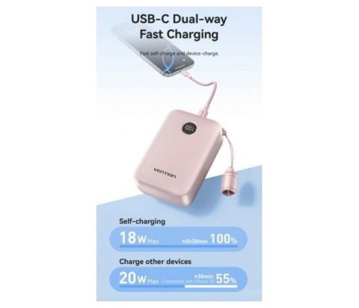 Powerbank 10000mAh Vention FHKW0/ 22.5W/ Blanca Especificaciones Interfaz: USB/ USB-C/ Micro-USB Capacidad de batería: 10000mAh / 37Wh (3.7 V) Ent..