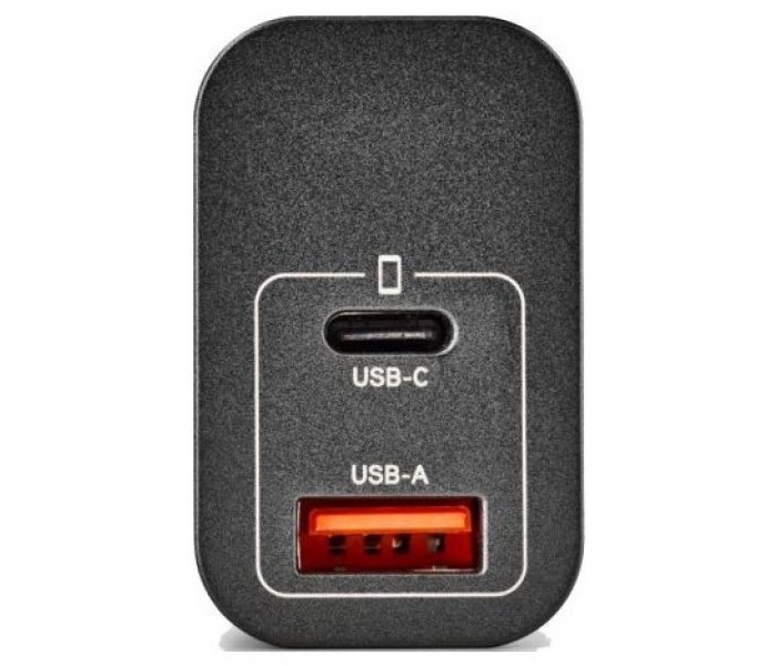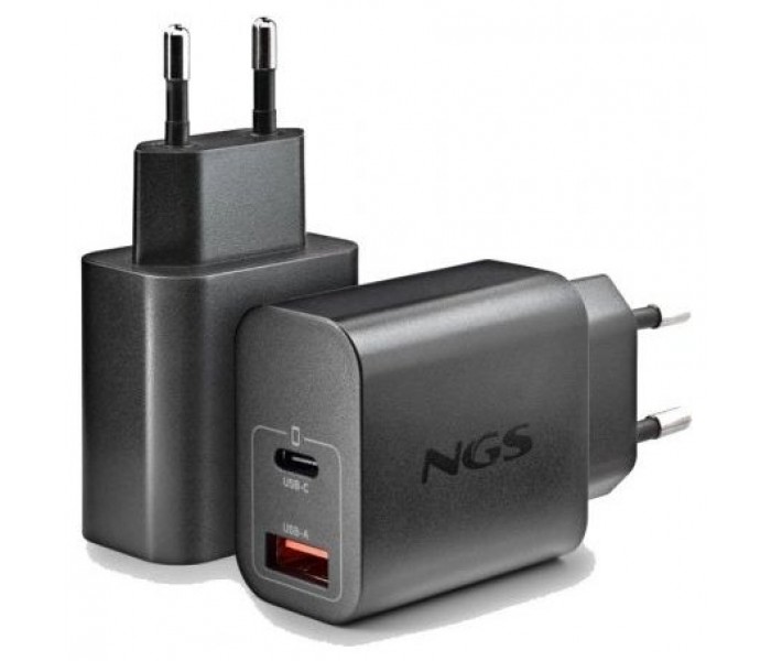 - Cargador GaN de pared con una salida USB-C (PD & PPS) y una salida USB-A QC 3.0 (Quick charge) de hasta 30W de potencia máxima para cargar dispositivos de manera rápida.