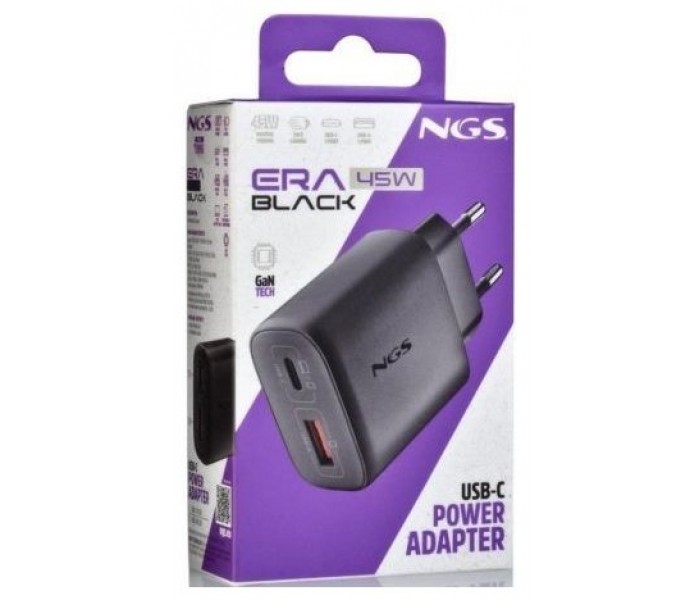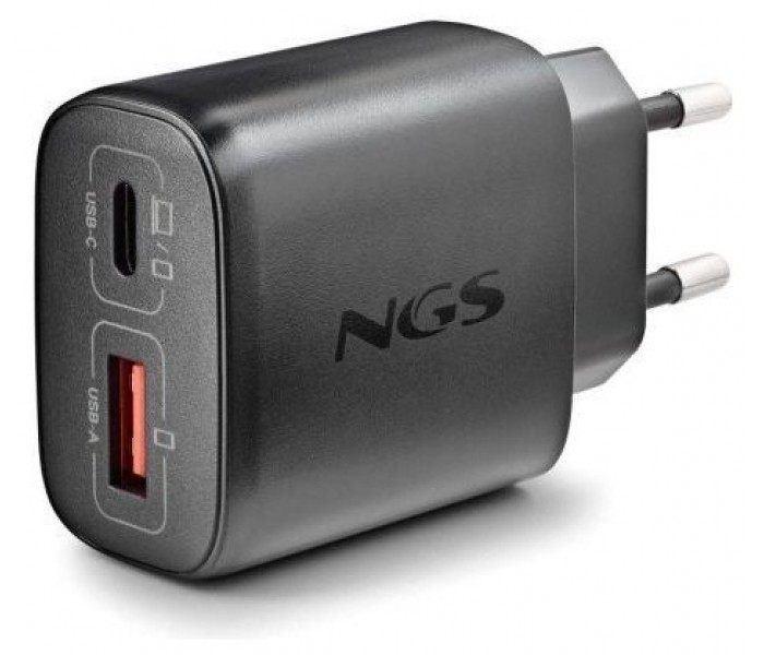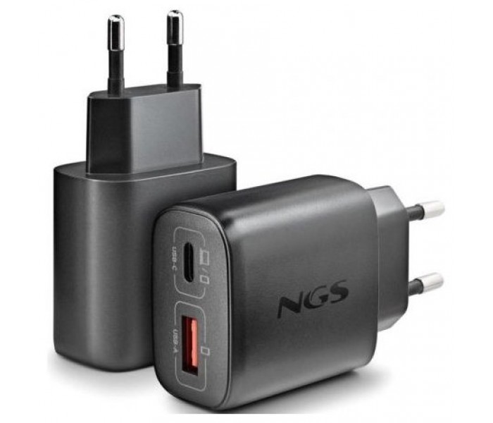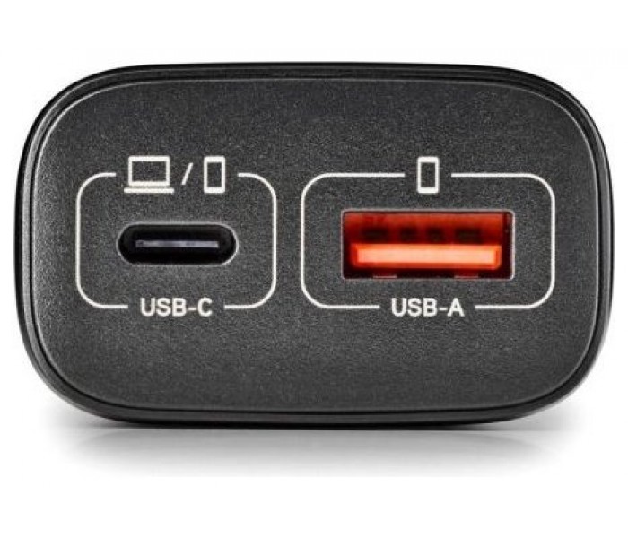 - Rápido cargador GaN de pared que incorpora una salida USB-C (PD & PPS) y una salida USB-A Quick Charge 3.0, ofreciendo hasta 45W de potencia total.