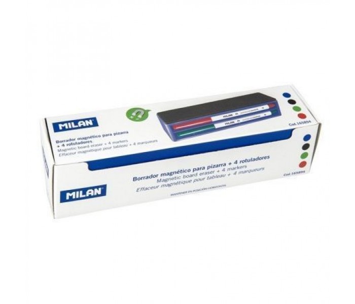 Pack Milan 165894/ Borrador de Pizarra Magnético + 4 Rotuladores para Pizarra/ 3.7mm/ Colores Surtidos