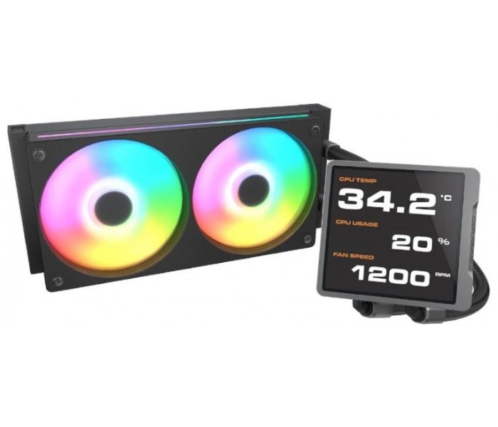 | Características | CPU Socket - Intel: 1851 / LGA1700 / LGA1200 / LGA115X / LGA1366 - AMD: AM5 / AM4 / AM3 / AM2 / FM2 / FM1 LCD - Pantalla LCD de 3,95 pulgadas - Resolución de pantalla: 720 × 720 px - Brillo de pantalla: 300 nits - Frecuencia de actualización: 60 Hz Bloque de agua y bomba - Material de la placa fría: Cobre - Velocidad de la bomba: 2700 ± 10% RPM - Voltaje nominal: 12 VDC - Corriente nominal: 0,2 A - Consumo de energía: 2.3 W - Conector: Bomba: 2510-3Pin Fuente de alimentación: Conector USB - Dimensiones: 88 x 83 x 67mm Radiador - Material: aleación de aluminio - Dimensiones: 272 x 121 x 27mm Tubería - Longitud: 390±5mm Ventiladores - Cantidad de ventiladores: 2 - Dimensiones: 363.3 x 125 x 25 mm - Velocidad del ventilador: 700-2500 RPM ±10% - Flujo de aire: 78.2 CFM - Presión de aire: 5,4 mmH2O - Ruido acústico: 38 dB(A) - Consumo de energía: 10,2 W (Fan) / 8W (LED) - Corriente nominal: 0.85A (Fan) / 1.6 A (LED) - Voltaje nominal: 12 VDC (Fan) / 5 VDC (LED) - Conector y control : Ventilador: 2510-4 pines PWM Luces: 5 V-3 pines ARGB |
