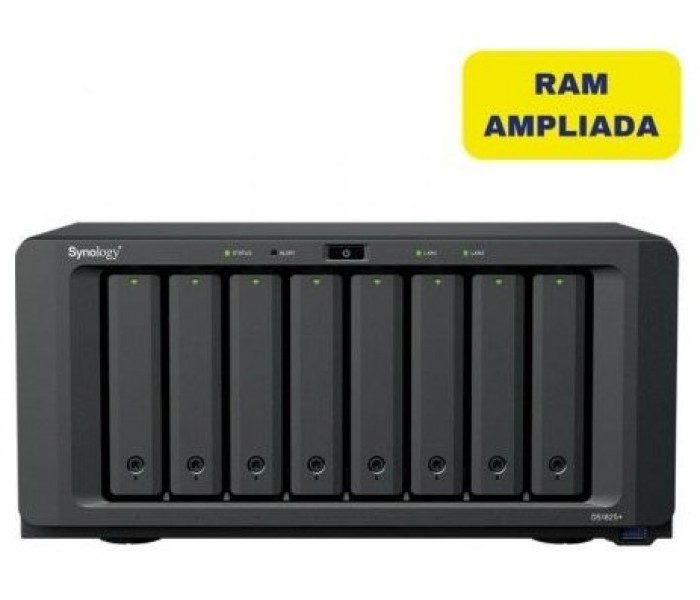 El DS1825+ cuenta con redes integradas de 2.5GbE y admite tanto SSD SATA como HDD en bahías internas de 2.5"/3.5", así como unidades M.2 NVMe a través de ranuras M.2 para su uso como caché.1,6 Su soporte para tarjetas de expansión permite flexibilidad de configuración, admitiendo redes más rápidas de hasta 25GbE.