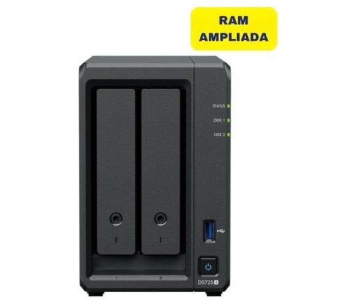 NAS Synology Diskstation DS725+/ 2 Bahías 3.5"- 2.5"/ 8GB DDR4/ Formato TorreDiskStation DS725+ Almacenamiento compacto y capaz para el hogar, pequeñ..