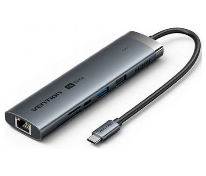 Vention Docking Station USB-C a HDMI/ USB-C 3.2Gen1/ USB3.0/ USB2.0/ RJ45/ SD/ TF/ PD TGUHB 0.15m Aluminio